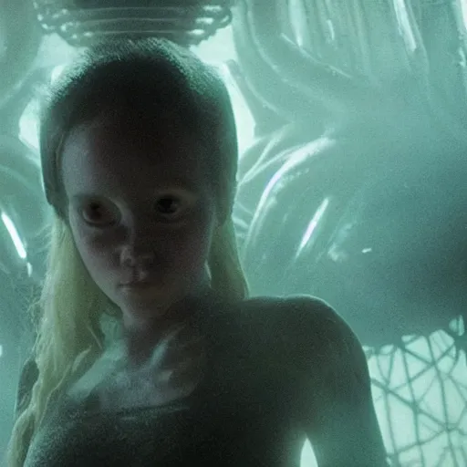 movie still of the alien girl, cinematic composition, cinematic light, by guillermo del toro