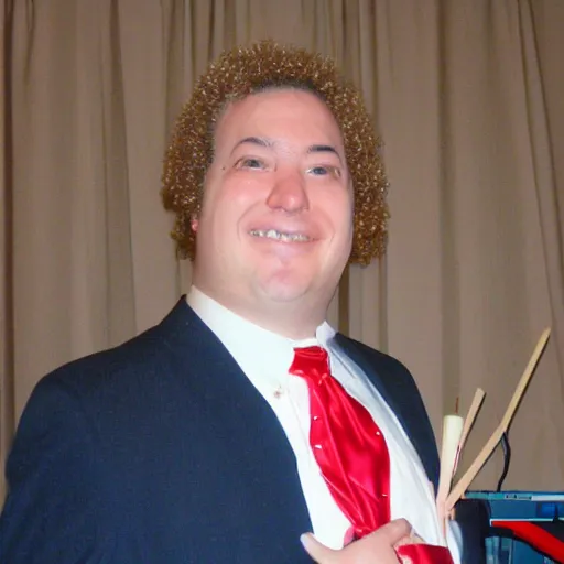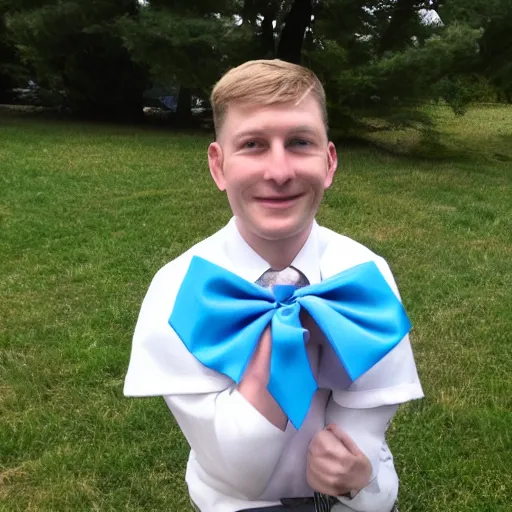 Prompt: Archie Andrews wearing a green bow tie and a black sweater vest with a letter R on it