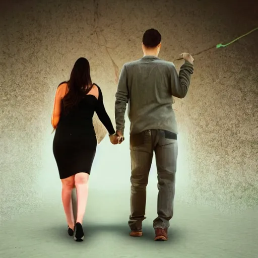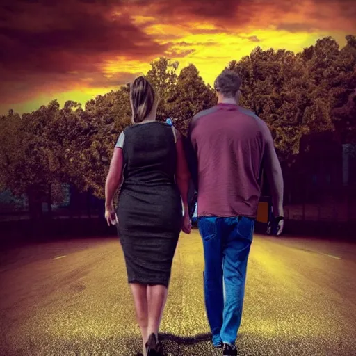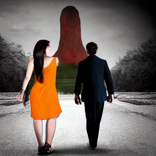 a giantess man with a giant woman walking together, enormous, big, photoshop, photo manipulation