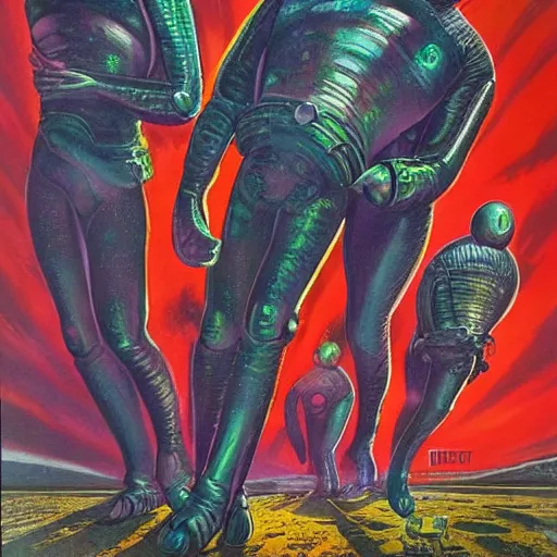 alien invasion of earth, 1 9 6 0 s scifi art style, highly detailed painting