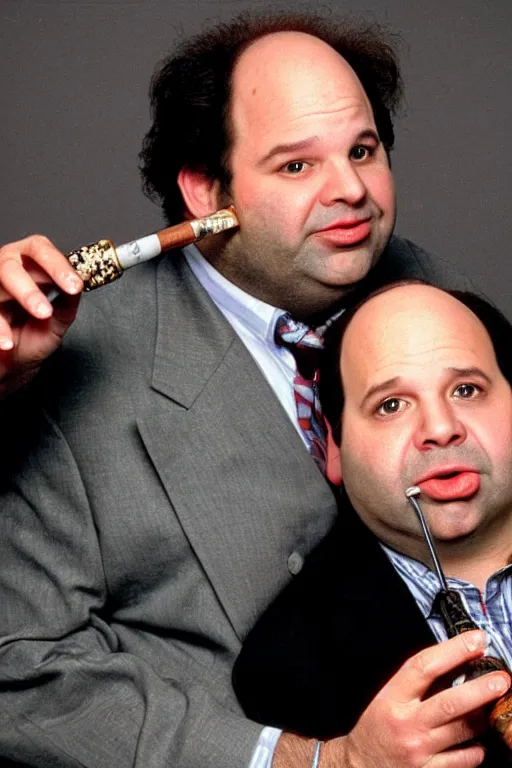 portrait photo of george constanza, jason alexander!!, smoking a pipe, atmospheric