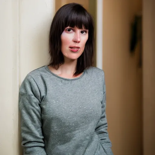 3 1 year old woman, short brown hair, freckles, green eyes, grey sweatshirt, rococo, elegant
