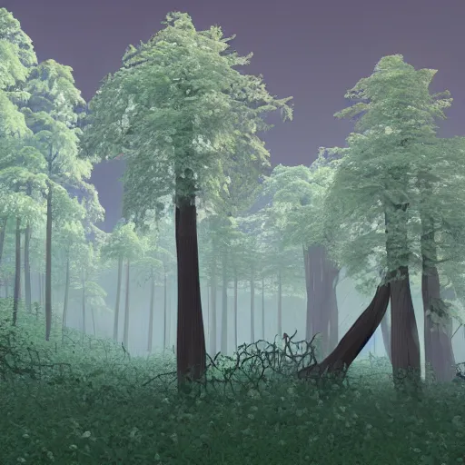 low poly landscape of a magical enchanted forest, digital render
