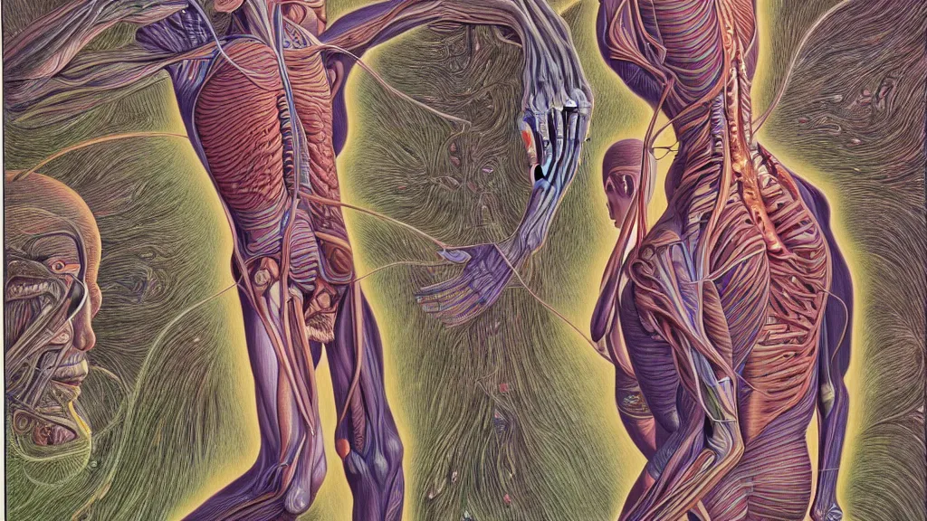 highly detailed illustration of the human anatomy by juan gatti, by moebius!!, by gottfried bammes, by alex grey