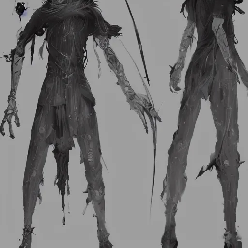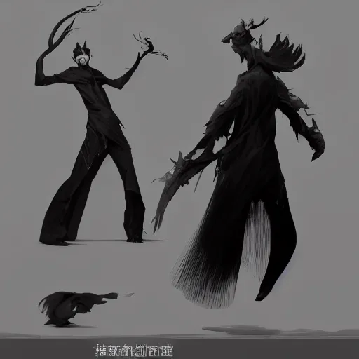 a set of clothing design of the magician of the fantasy world, thin young male, black and white t...Show more
