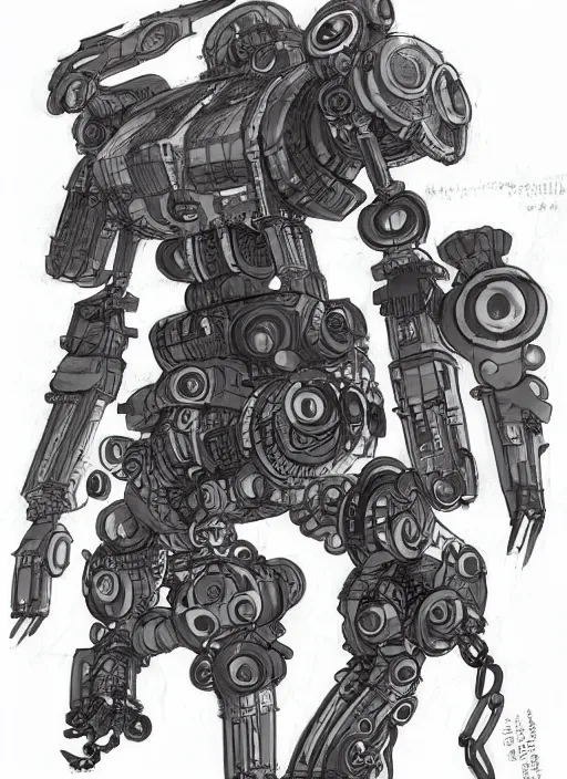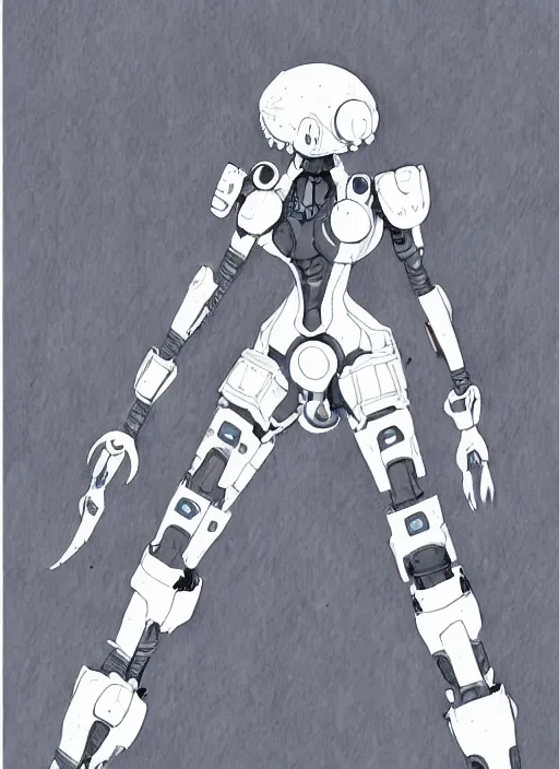 intricate artwork of a mech by kallamity sketchbook, inspired by nier : automata, clean white lab background