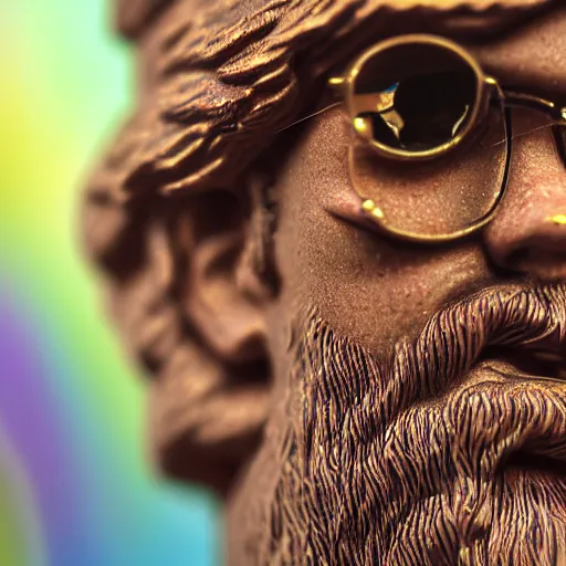 close up shot of a bobble head psychedelic terence mckenna, depth of field, fstop 1. 3, bokeh