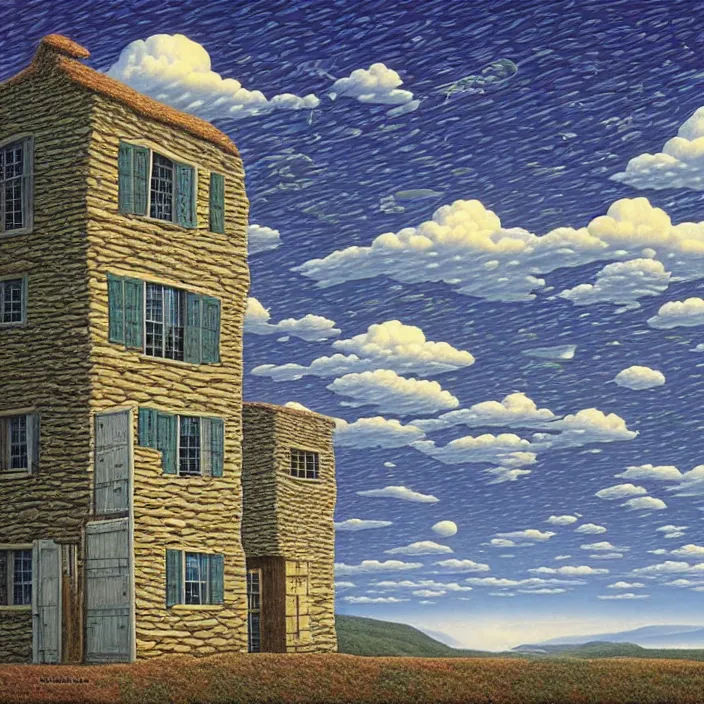 a building in a landscape, by rob gonsalves