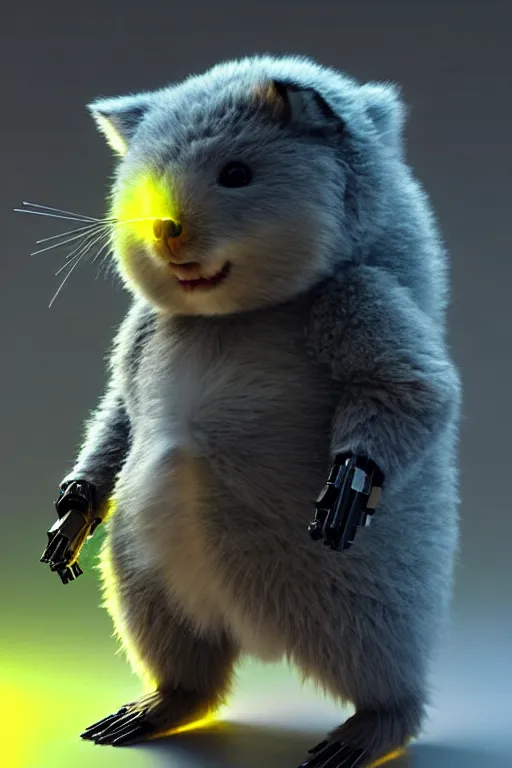 high quality 3 d render sci - fi very cute mecha & fluffy! wombat!! hybrid! fighting, highly deta...Show more