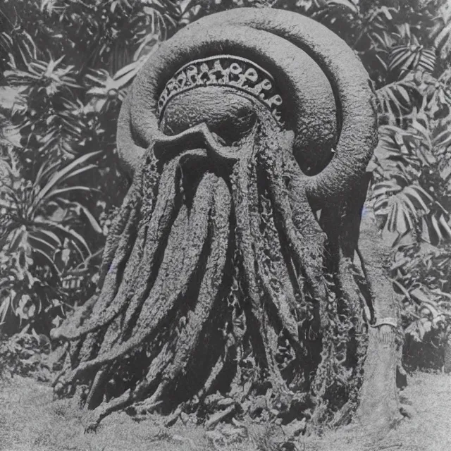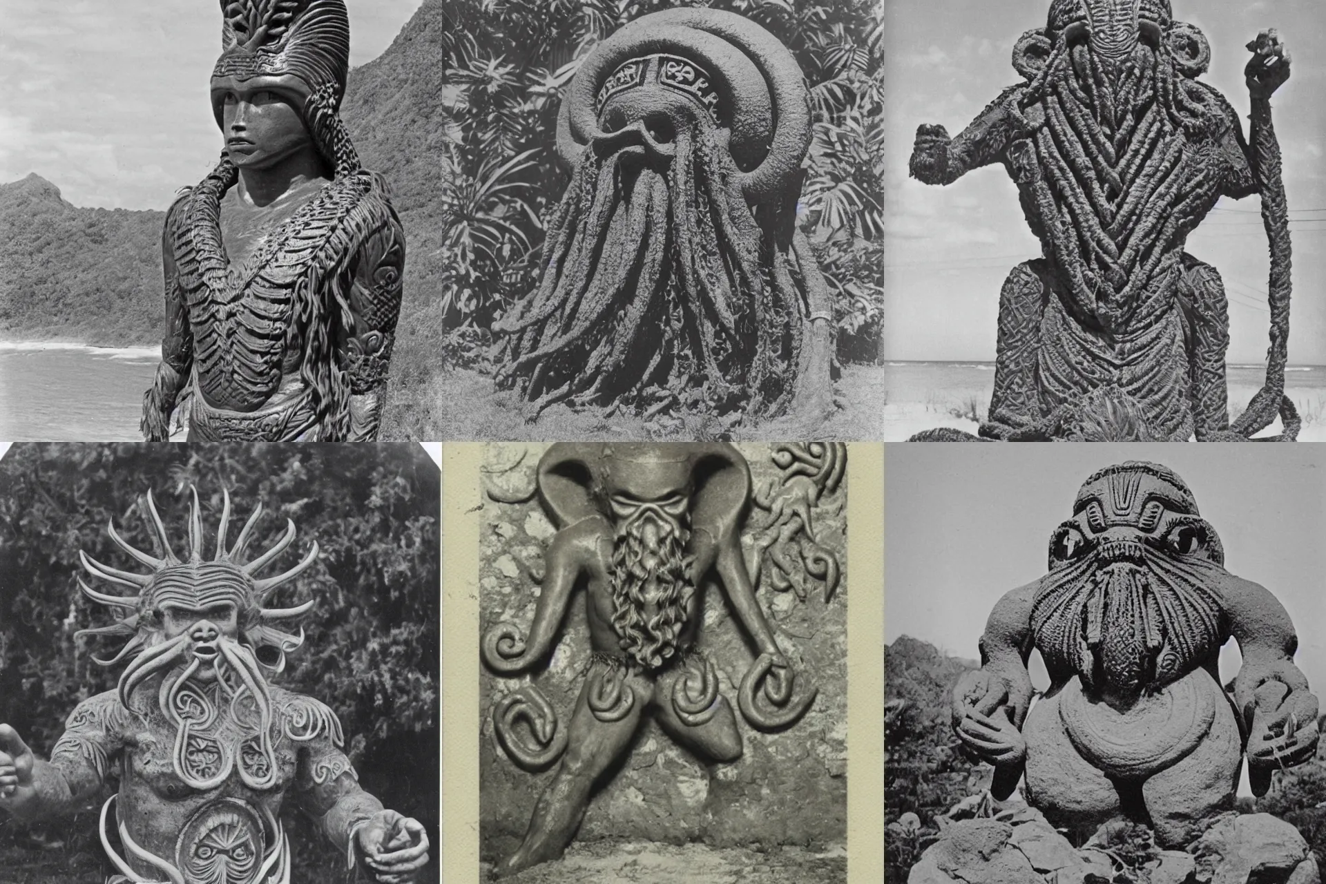 a vintage photograph of a polynesian idol of cthulhu