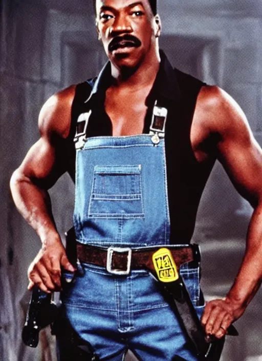 an 8 0's john alvin action movie poster starring eddie murphy face as a plumber to rich people. bathroom. overalls. tool belt. the movie is called with text beverly hills crap