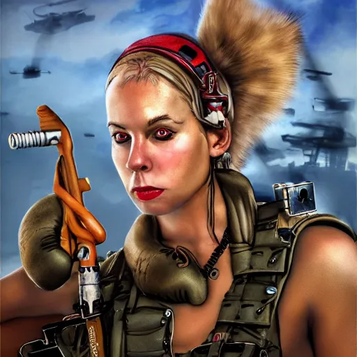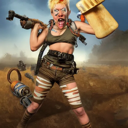 tank girl, ultra highly detailed, concept art, fun pose, wild eyes, big hammer, 4 k