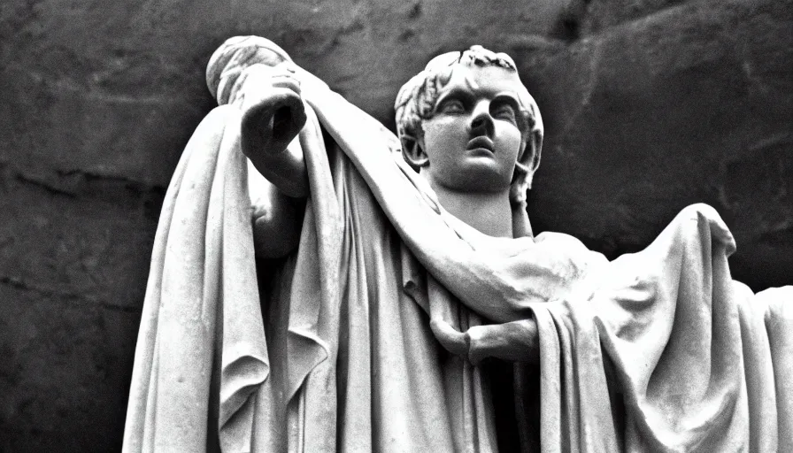 1 9 6 0 s movie still close - up of caligula in a white toga heavy bleed on ancient amphitheater, cinestill 8 0 0 t 3 5 mm, high quality, heavy grain, high detail, dramatic light, anamorphic, blood