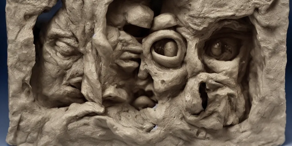 plasticine sculpture stop motion. salvador dali clay models. gallery paintings of flowers. visitors. room with a small hole in wall. john craxton. high detail. photorealistic