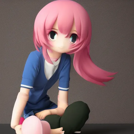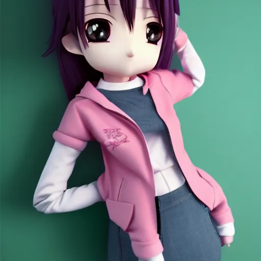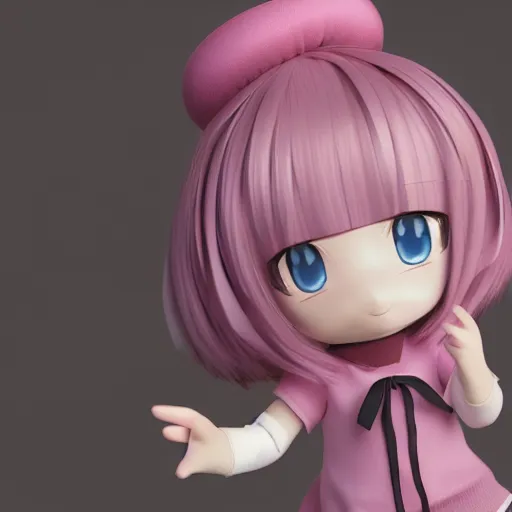 cute fumo plush of a pink tomboy girl, pout, anime, vray