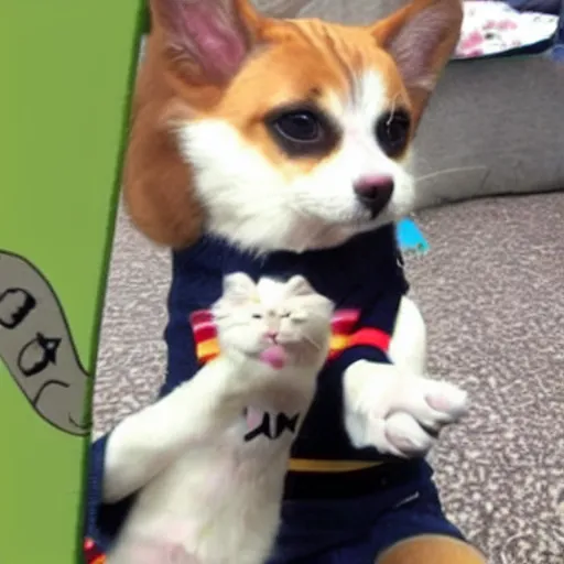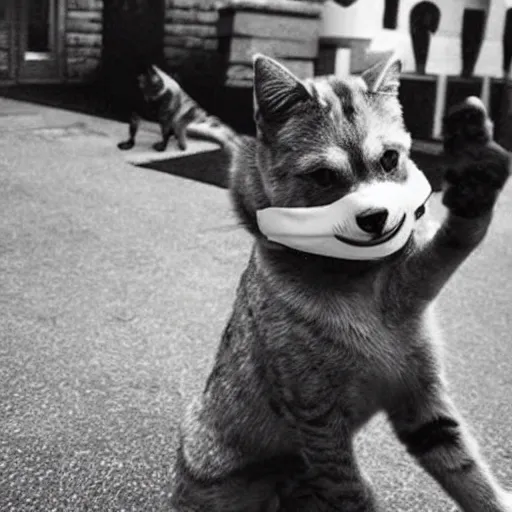 dog doing nazi salute with paw. and a cat