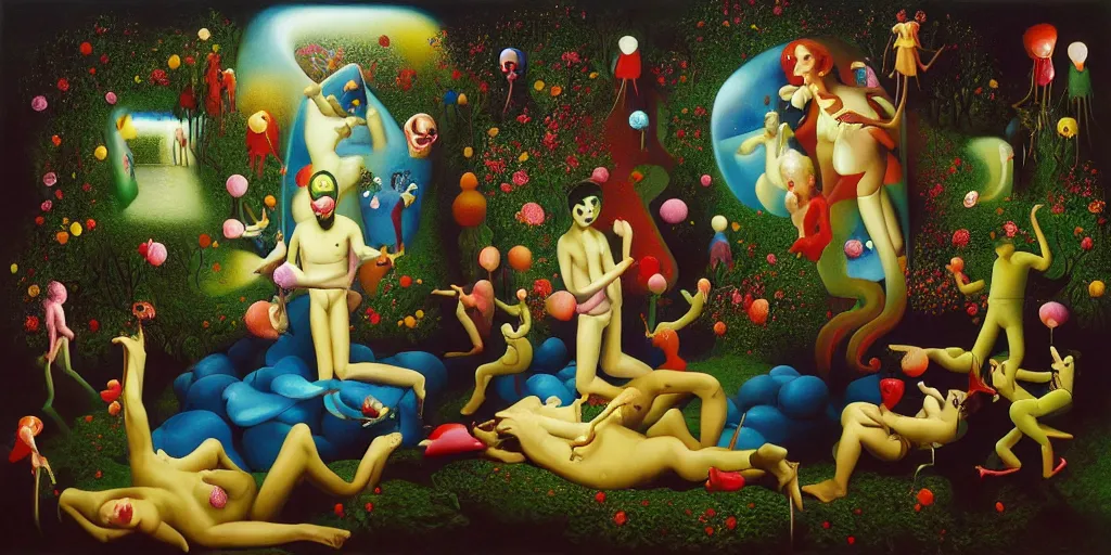 the three imaginary fates pleasure dream adventure love abstract oil painting by gottfried helnwein pablo amaringo raqib shaw