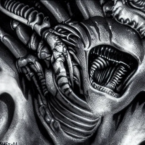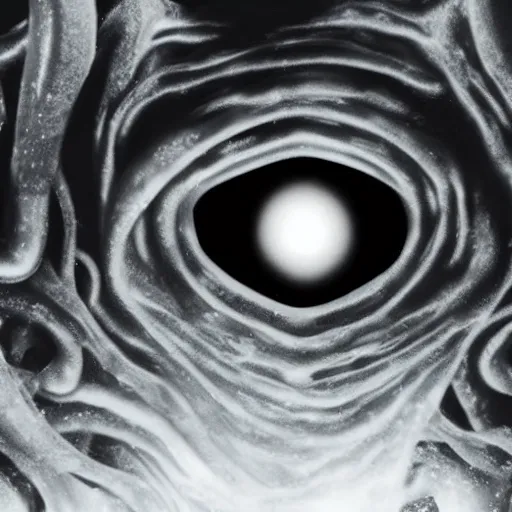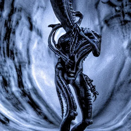 xenomorph in ice cavern, close up photo, creepypasta, monochromatic