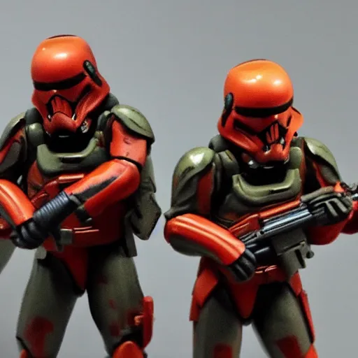 Prompt: Red metal stormtrooper armor