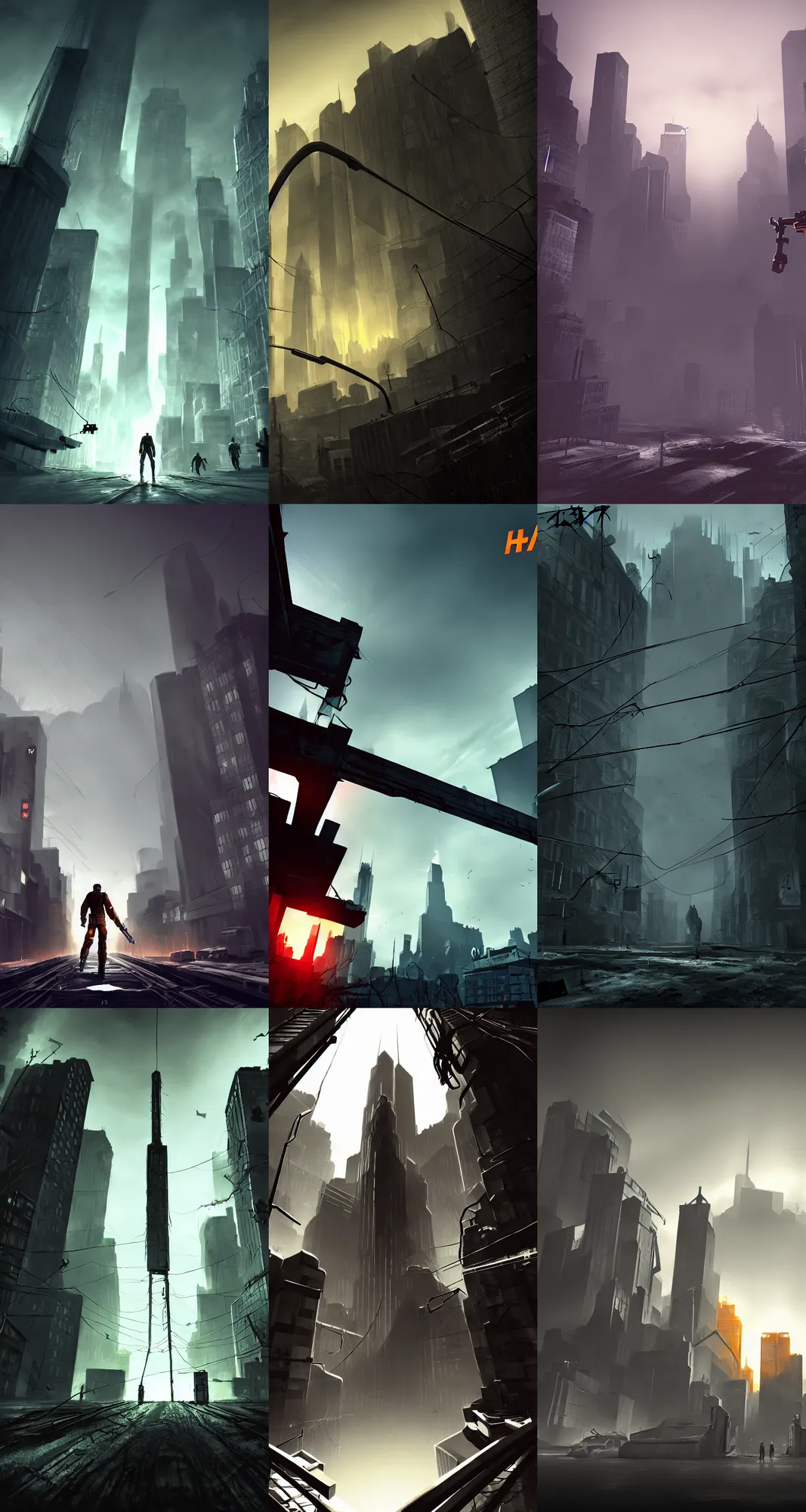 half - life 2, city 1 7, stylized, horizon, wallpaper, dark background, desktop background, behance, artstation, deviantart