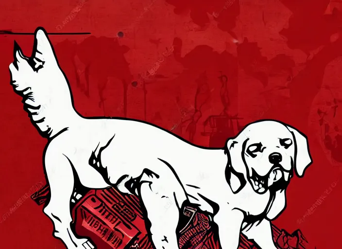 communist propaganda poster dog by moebius, vector art, cyberpunk, white flat background