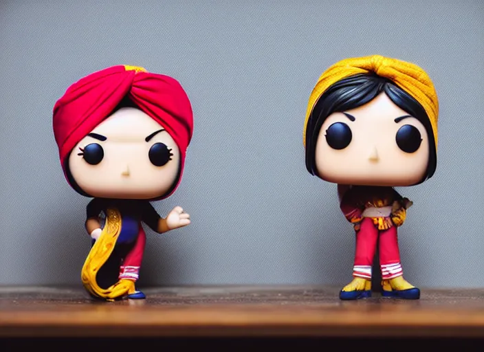 photo still of a funko pop wearing a turban, 8 k, studio lighting bright ambient lighting key light, 8 5 mm f 1. 8