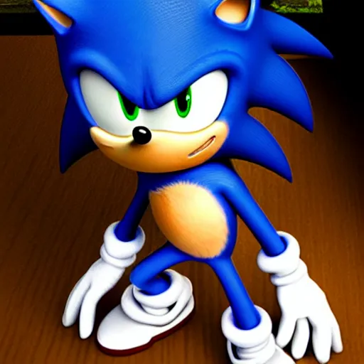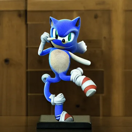 Prompt: Extremely detailed figurine of Sonic the Hedgehog, studio lightning, product photo. The stand is also extremely detailed.