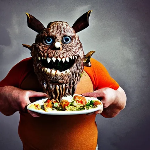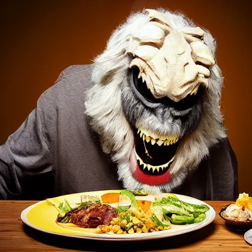 big sir monster eating food, photograph