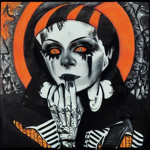 post - punk cabaret album cover, black, white, orange, psychedelic, new age, magic, enki bilal