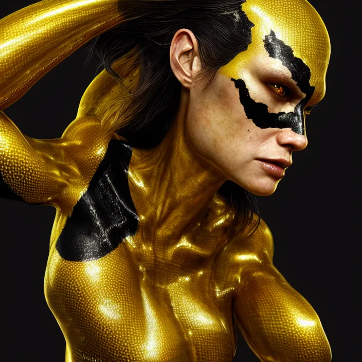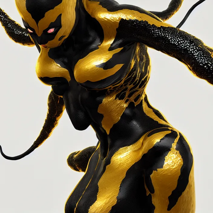 female gold and black venom, naturel, hyper detailed, digital art, trending in artstation, cinema...Show more