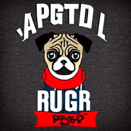 Prompt: a sad pug wearing a hoodie, ( sad ) is typed on the hoodie in upper case letters, digital art, synthwave style, trending on artstation, matte painting