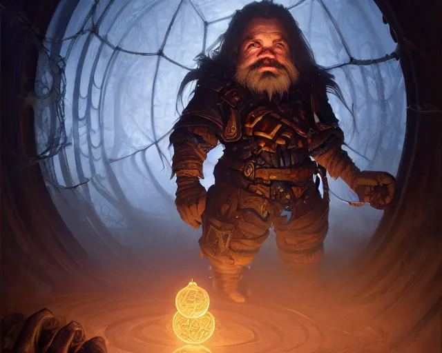 a 4 k cinematic screenshot still portrait of a dwarf in a dark liminal space room surrounded by s...Show more