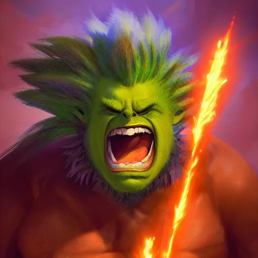 fantasy art of blanka from street fighter game in the style of greg rutkowski, detailed, cinematic, movie poster