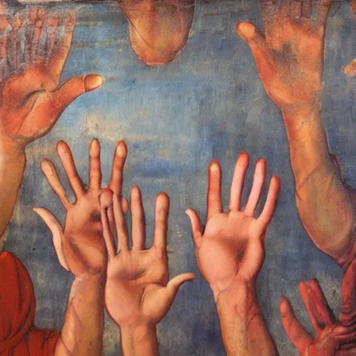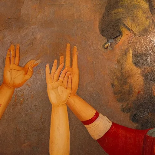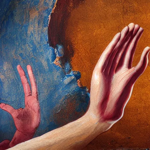 hand reaching out to save a life, fresco painting