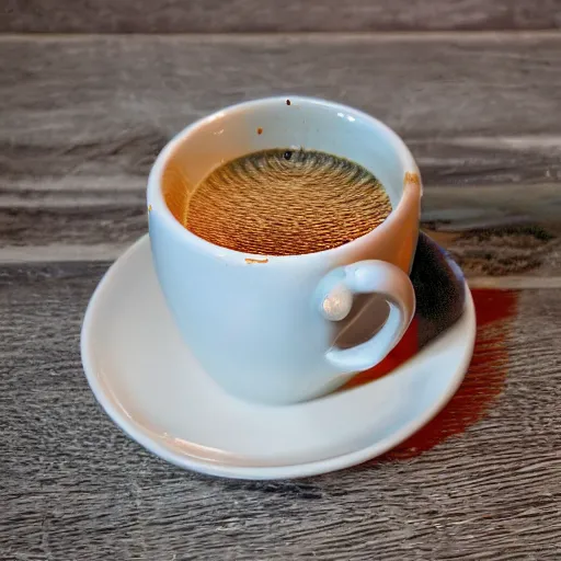 Prompt: a latte, in a cup made of obsidian