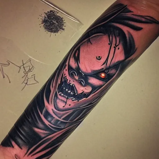 demonic ninja, tattoo of tokyo ghoul, detailed tattoo design, design by francesco ferrara, dr. lakra, instagram