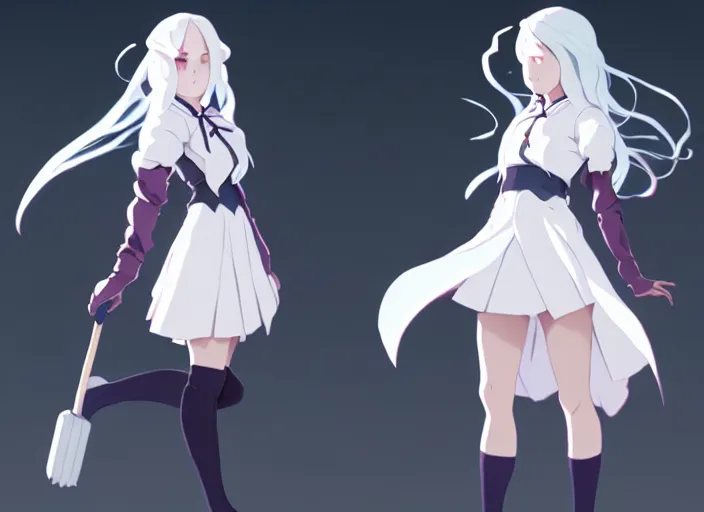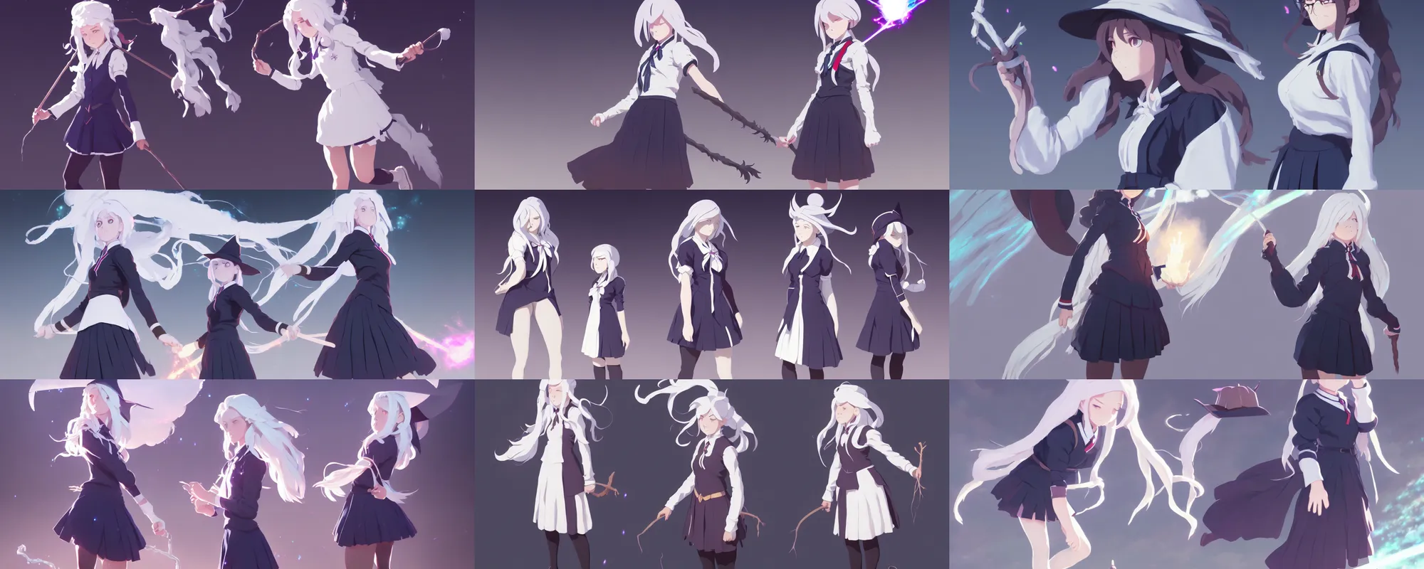 visual novel sprites of female student witch by greg rutkowski, witch academia, magic school unif...Show more