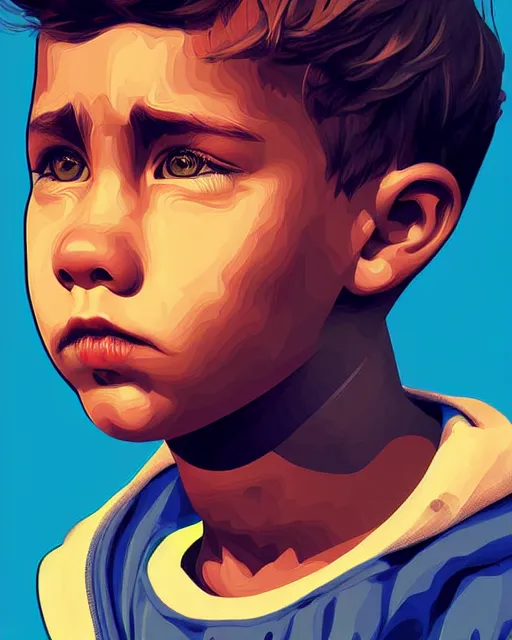 digital art of dreaming boy, illustration, highly detailed, simple, no jagged lines, smooth, artstation, artwork by obey, artwork by sandra chevrier