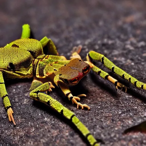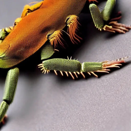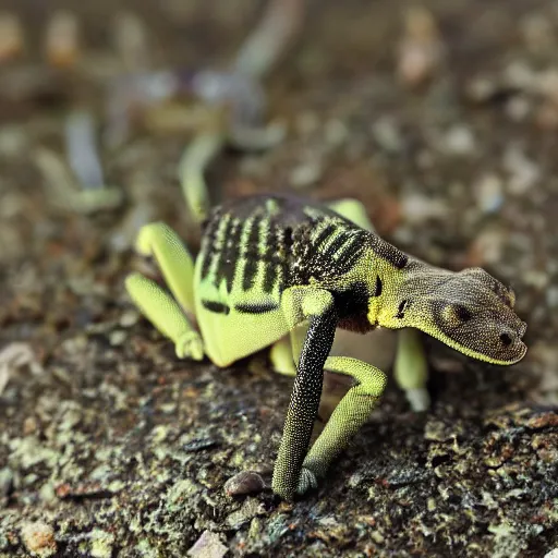 the head of a lizard photoshopped onto a tarantula's body, full - body shot