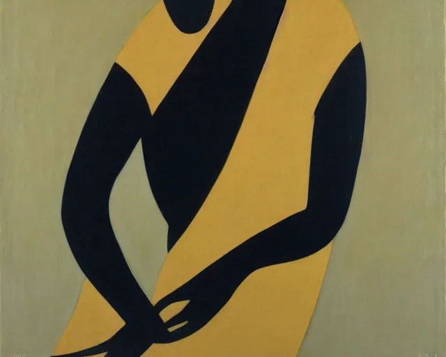 Prompt: an abstract minimalist oil painting. portrait of a androgynous person, unknown artist. oil on panel. Museum Scan