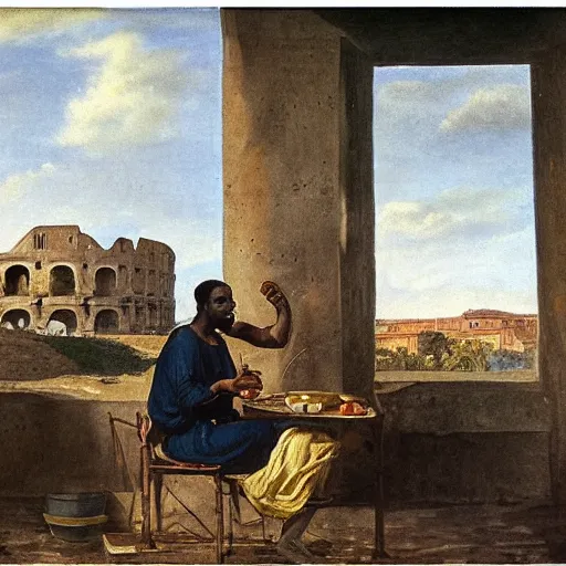 a nubian eating breakfast, buildings in rome by martinus rørbye