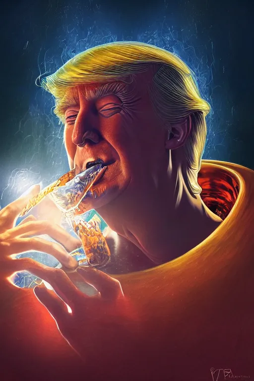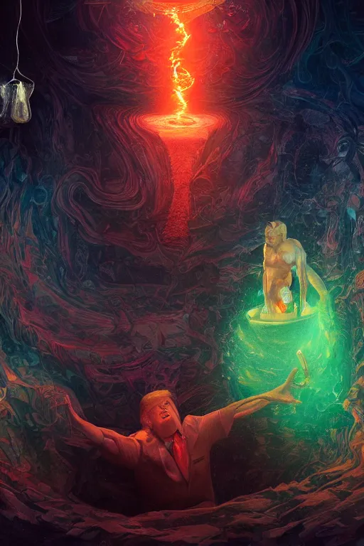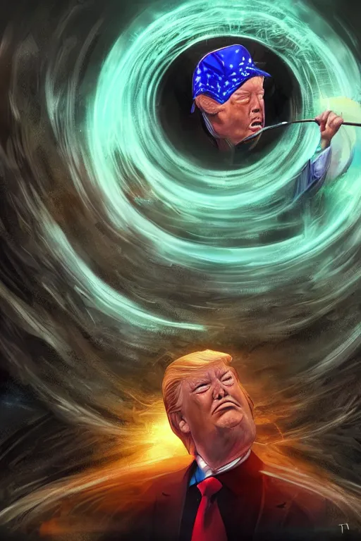 portrait of trump drinking ayahuasca in a wormhole, by pablo amaringo, dramatic lighting, concept art, artstation