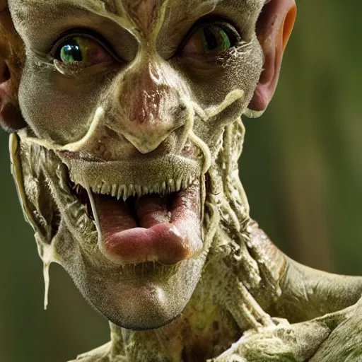 closeup photo of human partially mutating into an anthropomorphic insect, in the forest. physiological transformation ; hybrid creature. highly - detailed ; photorealistic.