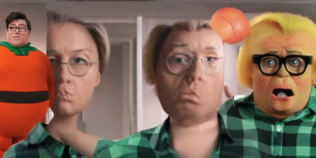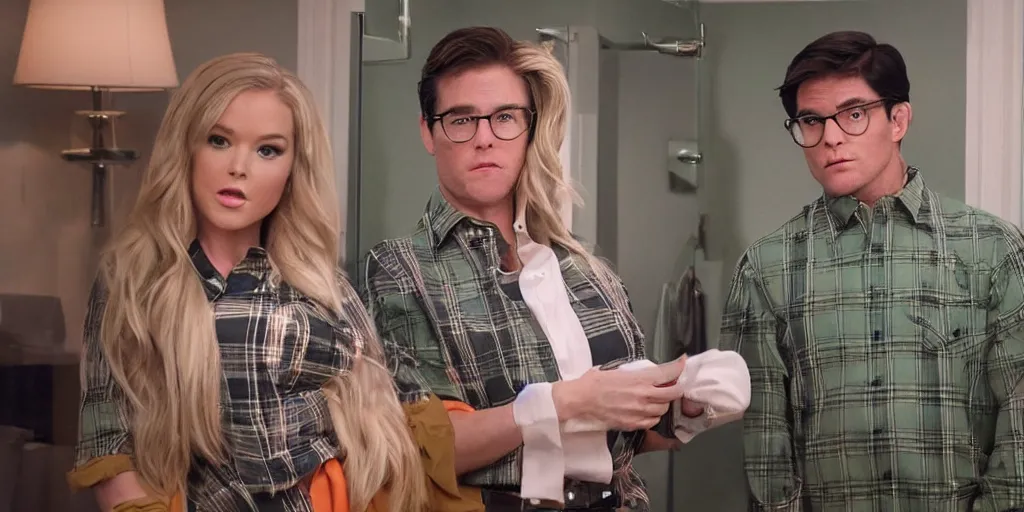 ultra wide angle photo of megan kelly dressed in a green flannel shirt and black dress pants as c...Show more