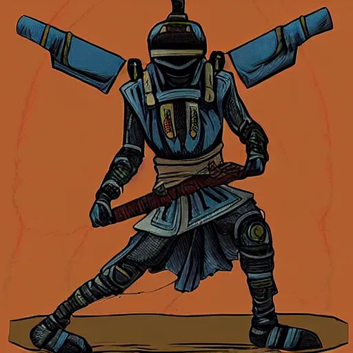 Prompt: japanese futuristic warrior with many scars, hard ink, no pencils, full body drawing