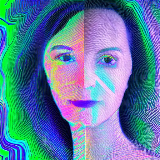portrait of a woman inspired by data - driven art, generative, iridescent, self - confidence, electrons, coding, holographic