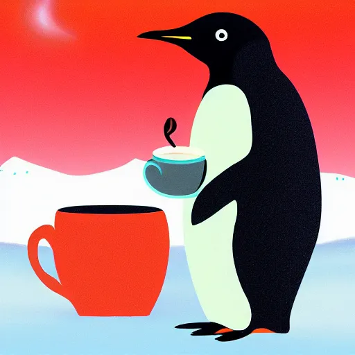 penguin taking a coffee in the middle on the artic, trending in art station
