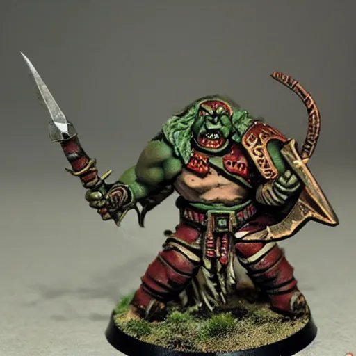 warhammer fantasy battle, orc warrior with spear and shield