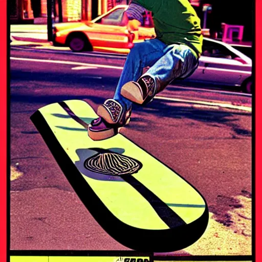 y 2 k videogame poster ad scan, fisheye photo of skateboard, street wear 2 0 0 0 s y 2 k magazine