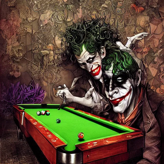the joker playing pool, by ernst haeckel, artgerm, james jean